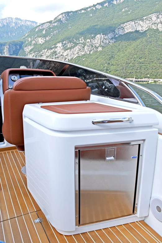 Die Breva 35 kann mit Decks und Kabinenmöbeln aus klassischem Mahagoni oder Teakholz, aber auch künstlichem Teakholz ausgestattet werden. Zwei Motoren von Mercruiser oder Volvo mit zusammen bis zu 860 PS sorgen für eine Leistung, die sich sehen und hören lassen kann. Das Cockpit verfügt über eine Chaiselongue, eine Rundum-Sitzgruppe, eine dreifache Sonnenliegefläche und eine erweiterte Badeplattform.
